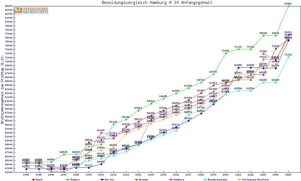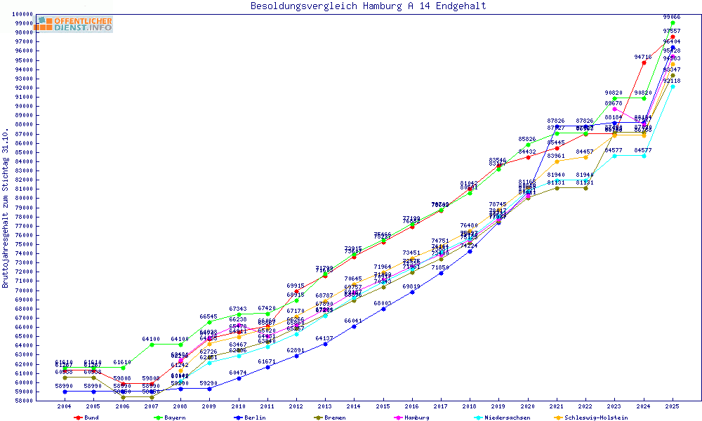 | Besoldungsvergleich A 14 im Jahr 2025 | Anfangsgehalt | ||||||