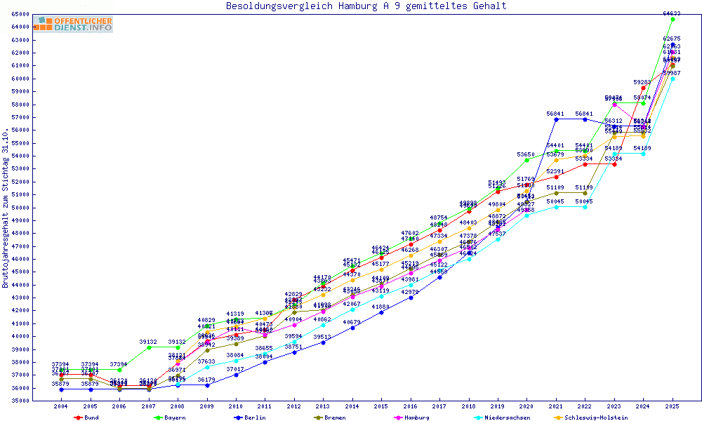 | Besoldungsvergleich A 9 im Jahr 2025 | gemitteltes Gehalt | ||||||