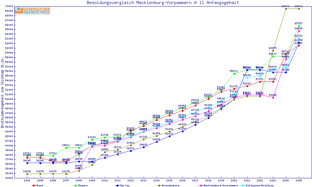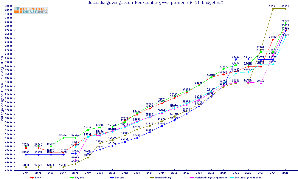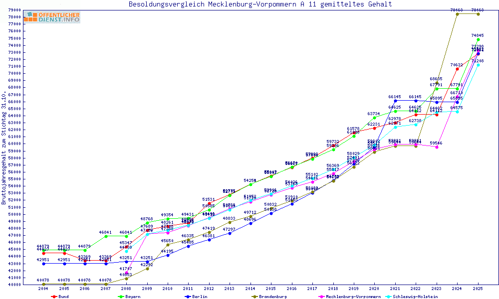 | Besoldungsvergleich A 11 im Jahr 2025 | gemitteltes Gehalt | ||||||