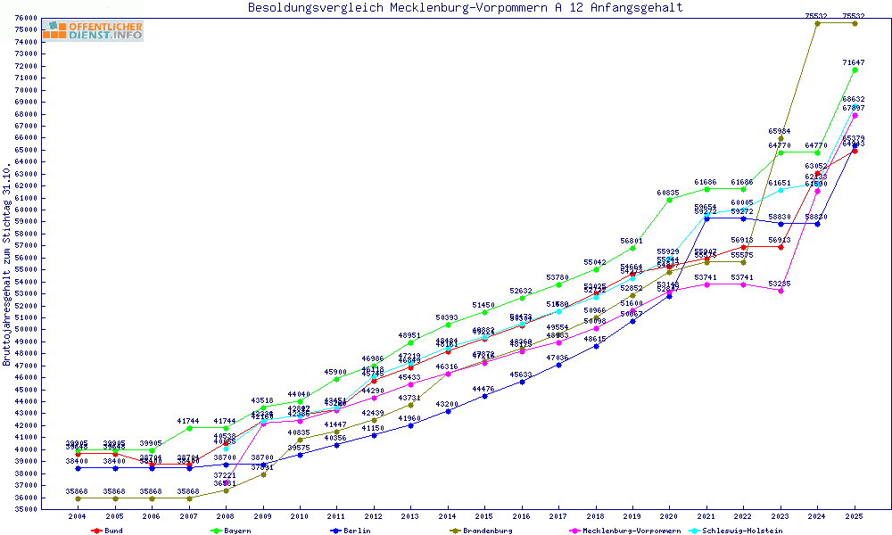| Besoldungsvergleich A 12 im Jahr 2025 | Anfangsgehalt | ||||||