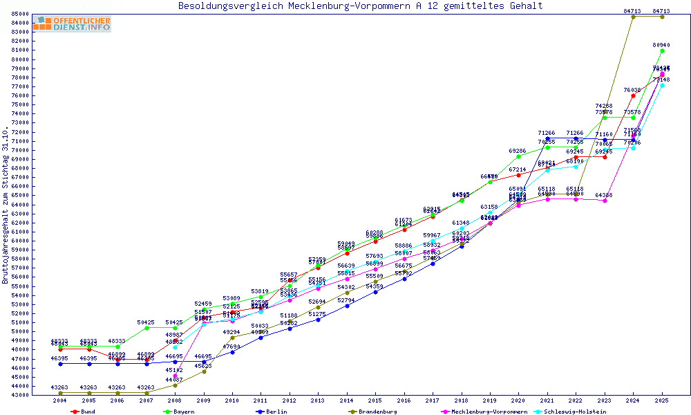 | Besoldungsvergleich A 12 im Jahr 2025 | gemitteltes Gehalt | ||||||