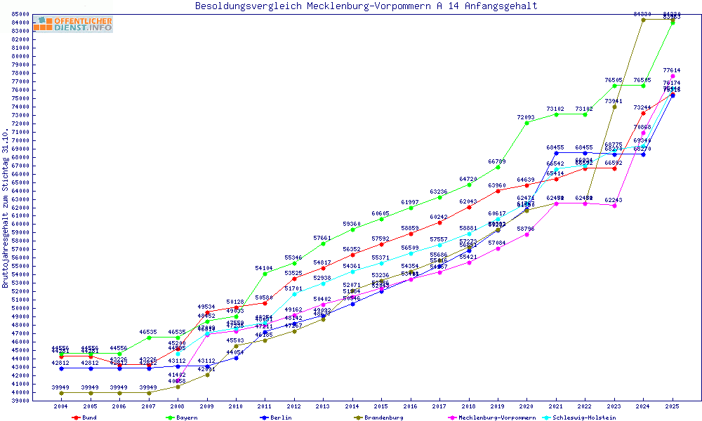 | Besoldungsvergleich A 14 im Jahr 2025 | Anfangsgehalt | ||||||