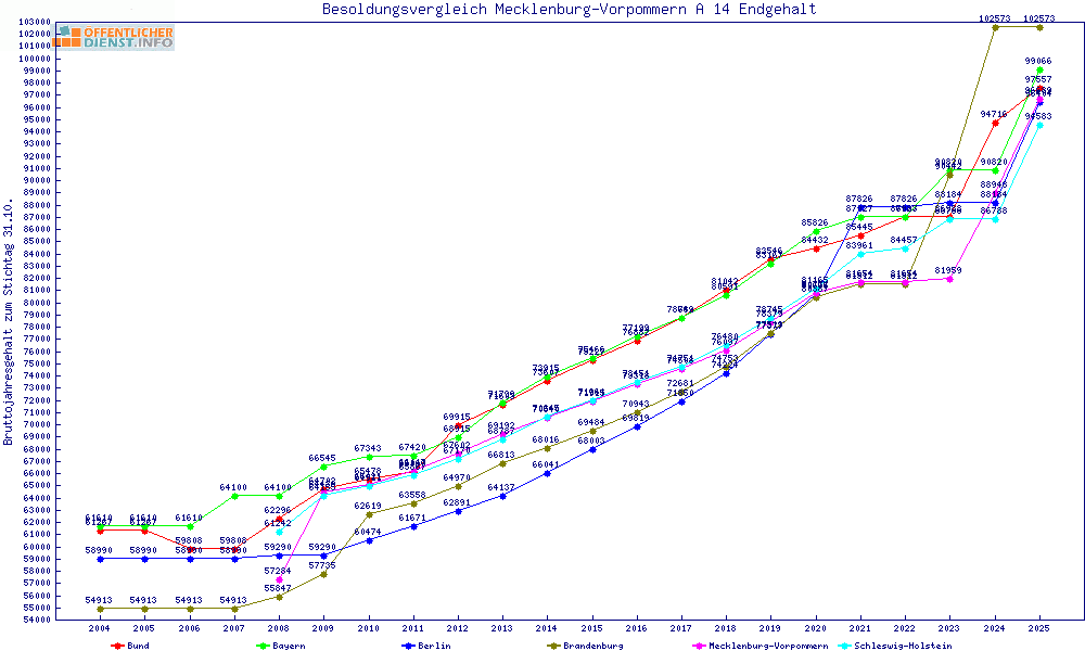 | Besoldungsvergleich A 14 im Jahr 2025 | gemitteltes Gehalt | ||||||
