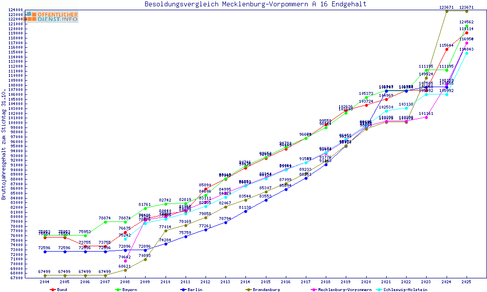 | Besoldungsvergleich A 16 im Jahr 2025 | Anfangsgehalt | ||||||