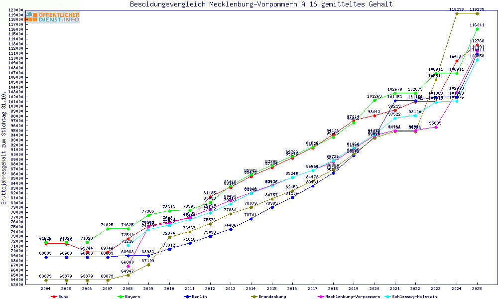 | Besoldungsvergleich A 16 im Jahr 2025 | gemitteltes Gehalt | ||||||