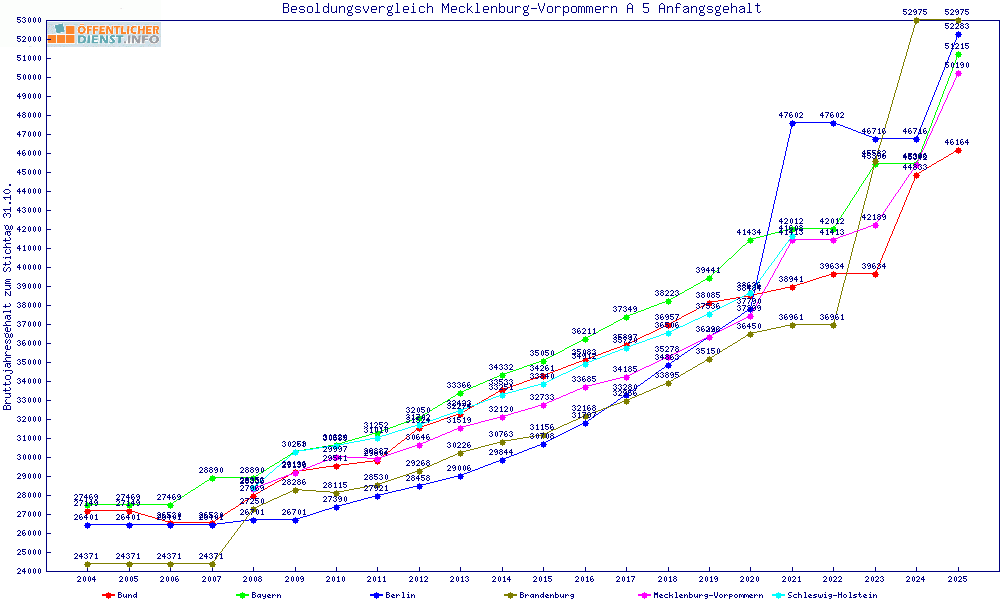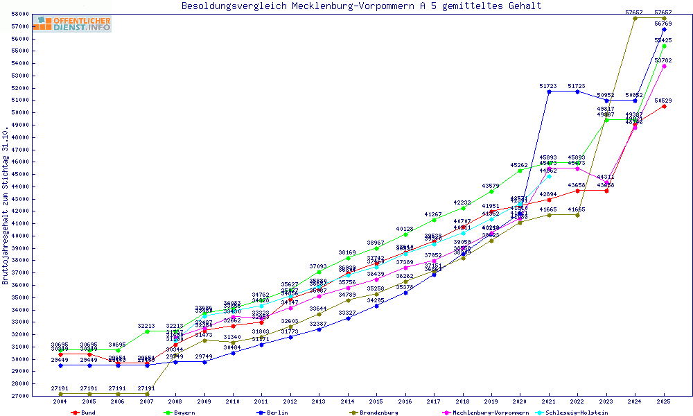 | Besoldungsvergleich A 5 im Jahr 2025 | gemitteltes Gehalt | ||||||