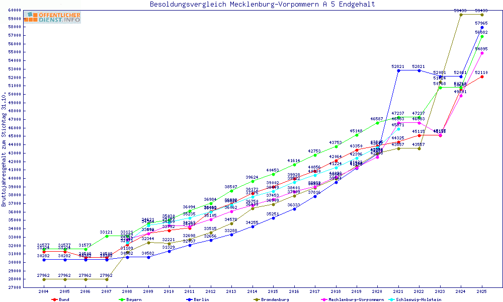 | Besoldungsvergleich A 5 im Jahr 2025 | Endgehalt | |||||||