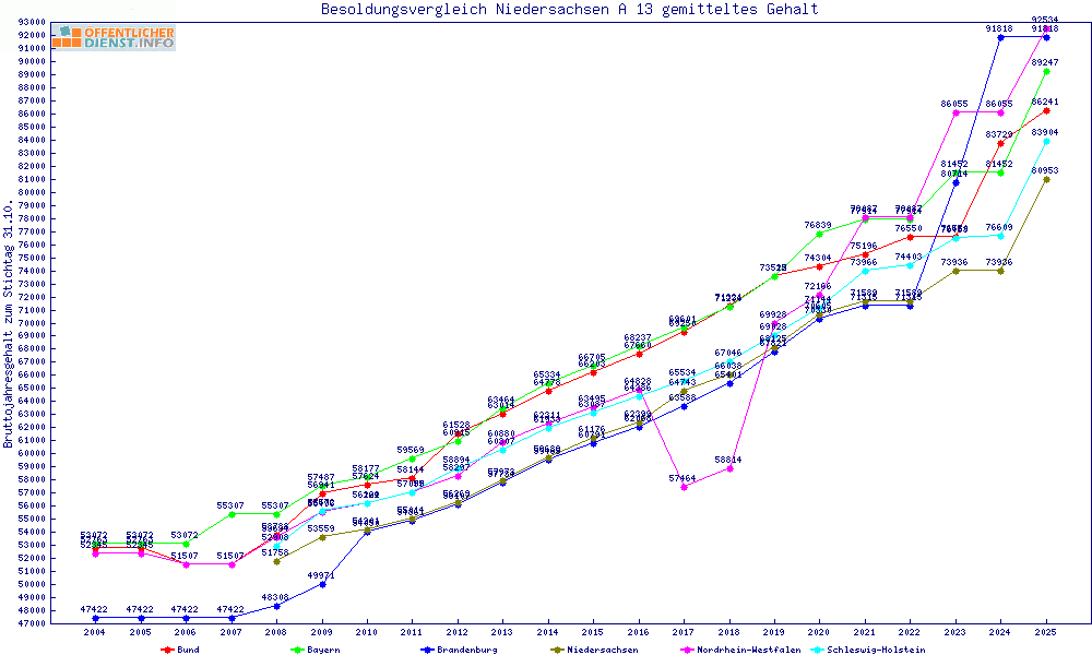 | Besoldungsvergleich A 13 im Jahr 2025 | gemitteltes Gehalt | ||||||