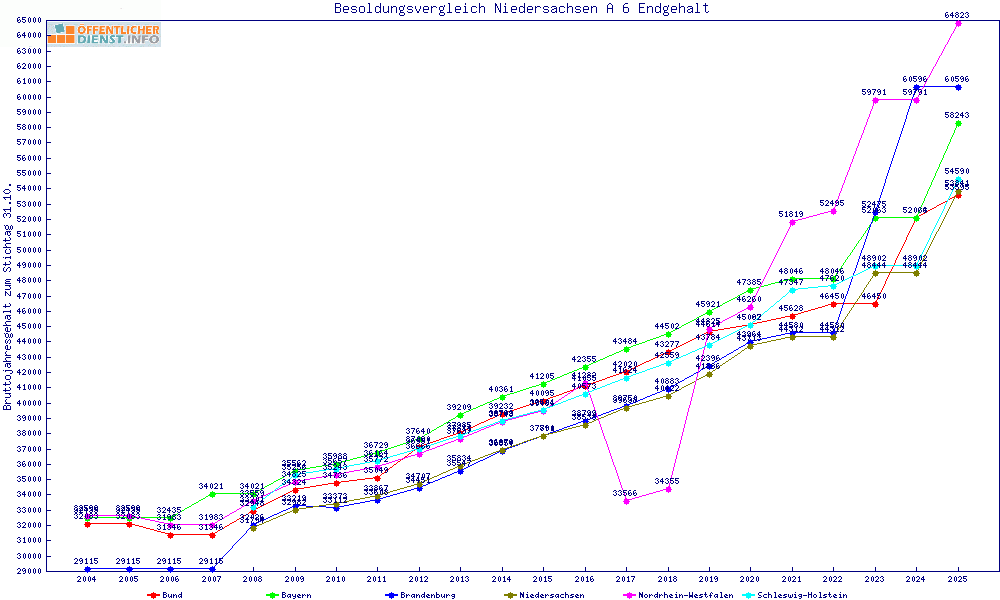 | Besoldungsvergleich A 6 im Jahr 2025 | Endgehalt | |||||||