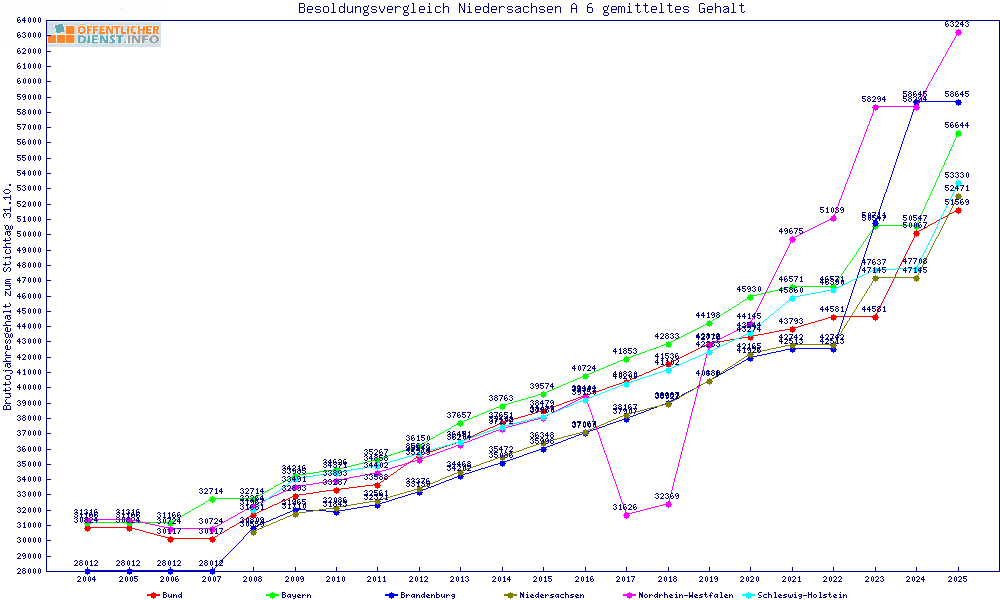 | Besoldungsvergleich A 6 im Jahr 2025 | gemitteltes Gehalt | ||||||