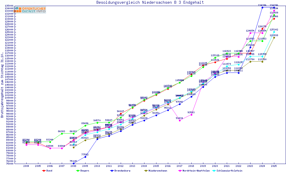 | Besoldungsvergleich B 3 im Jahr 2025 | gemitteltes Gehalt | ||||||