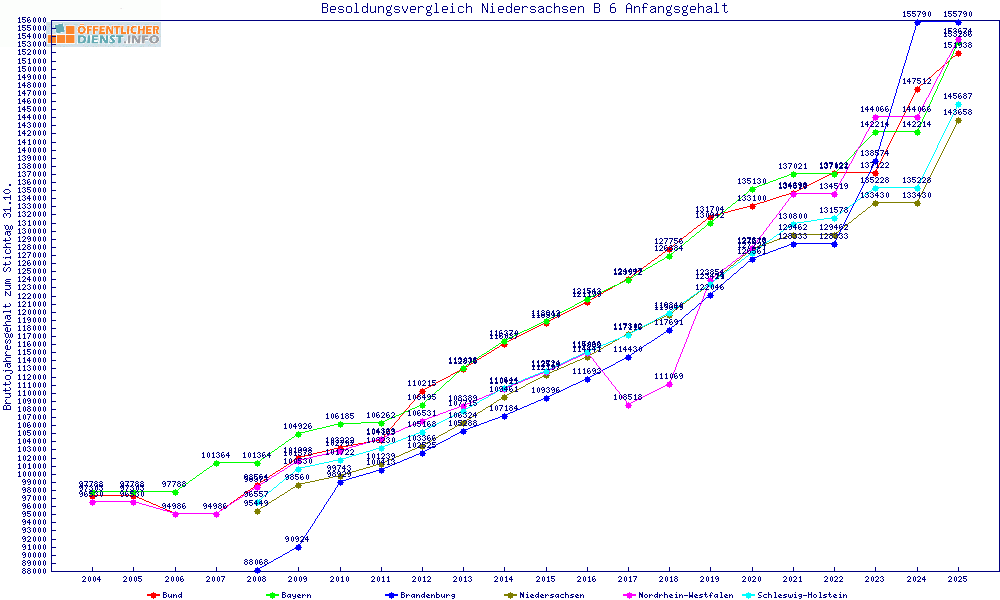| Besoldungsvergleich B 6 im Jahr 2025 | Anfangsgehalt | ||||||
