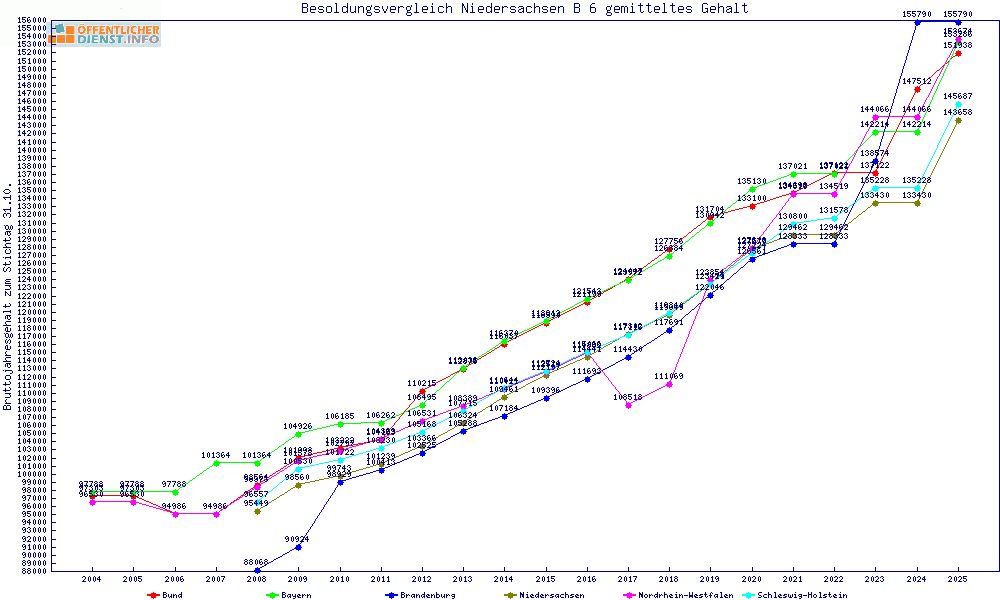 | Besoldungsvergleich B 6 im Jahr 2025 | gemitteltes Gehalt | ||||||