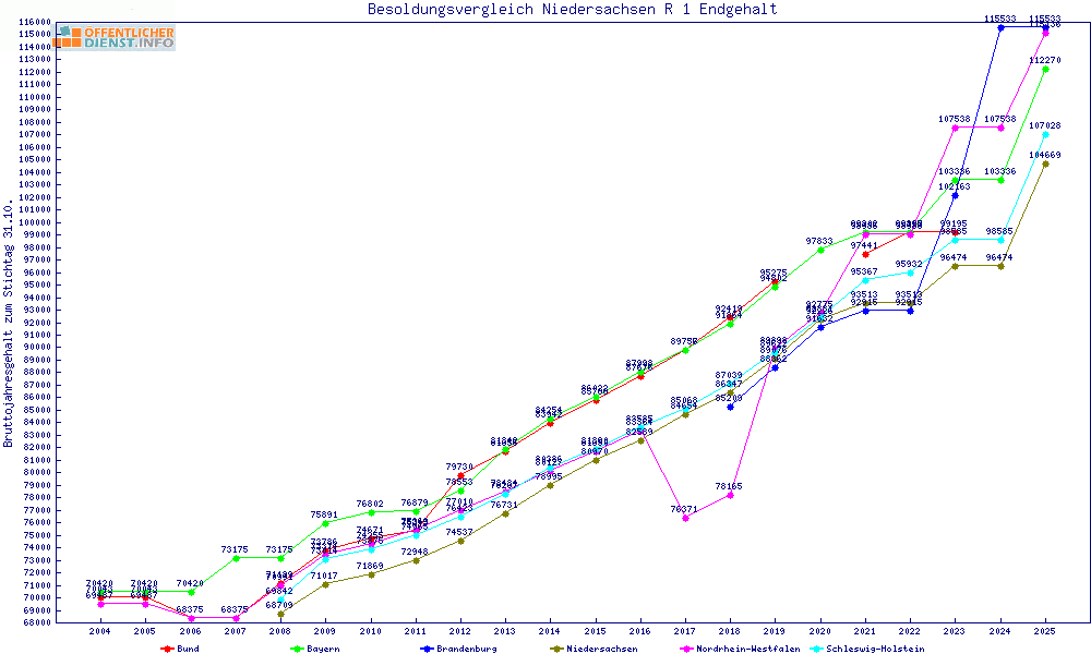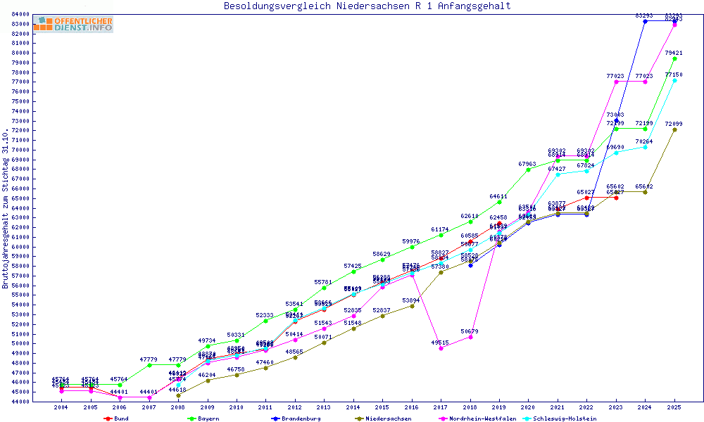 | Besoldungsvergleich R 1 im Jahr 2025 | Anfangsgehalt | ||||||