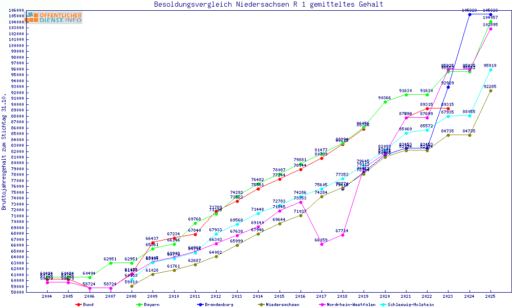 graphischer Besoldungsvergleich gemitteltes Gehalt aller Bundesländer