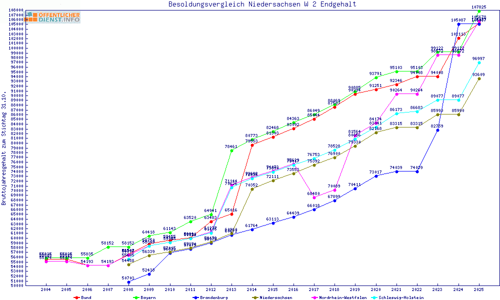 | Besoldungsvergleich W 2 im Jahr 2025 | Anfangsgehalt | ||||||