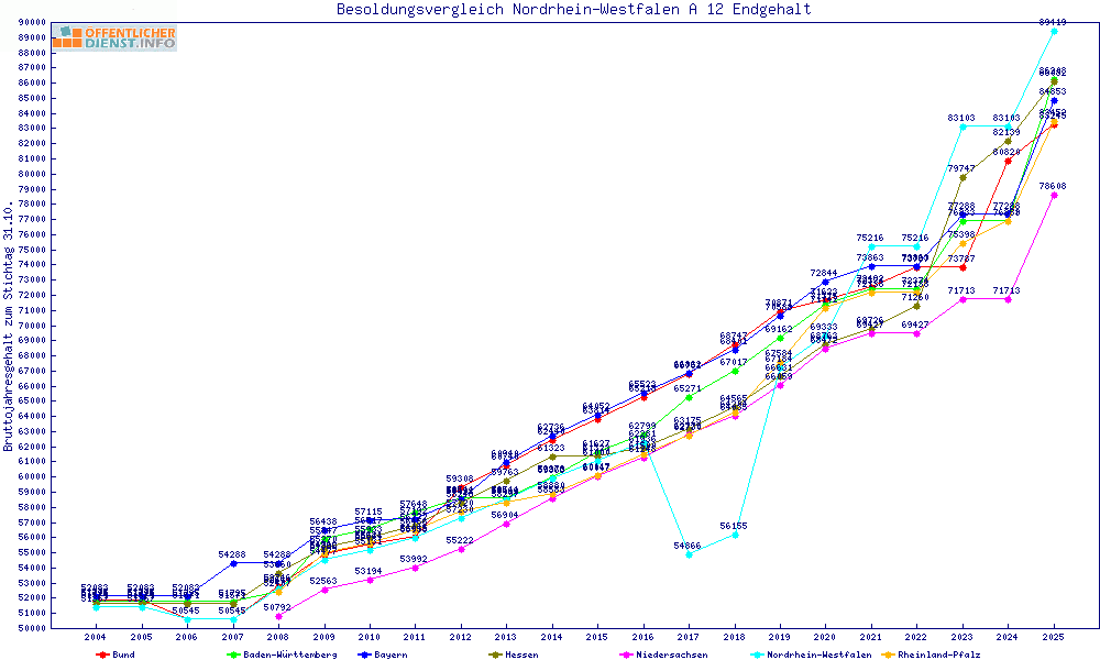 | Besoldungsvergleich A 12 im Jahr 2025 | Anfangsgehalt | ||||||
