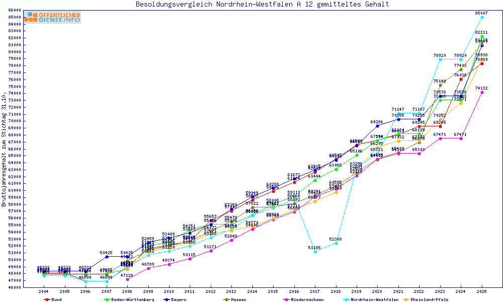| Besoldungsvergleich A 12 im Jahr 2025 | gemitteltes Gehalt | ||||||