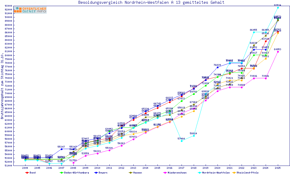 | Besoldungsvergleich A 13 im Jahr 2025 | gemitteltes Gehalt | ||||||
