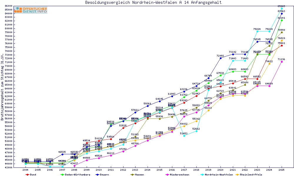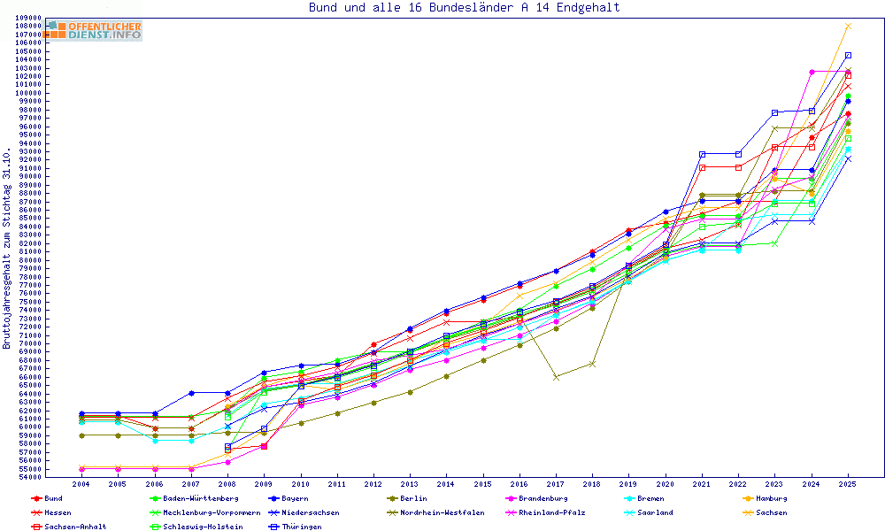 | Besoldungsvergleich A 14 im Jahr 2025 | Anfangsgehalt | ||||||