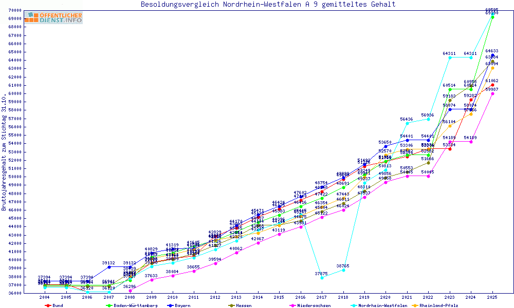 | Besoldungsvergleich A 9 im Jahr 2025 | gemitteltes Gehalt | ||||||