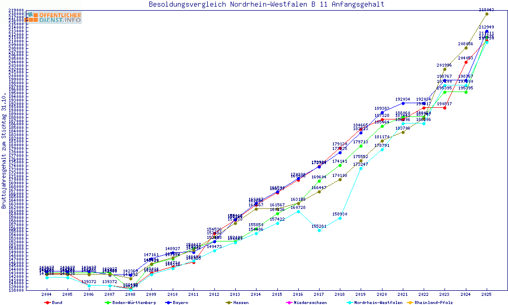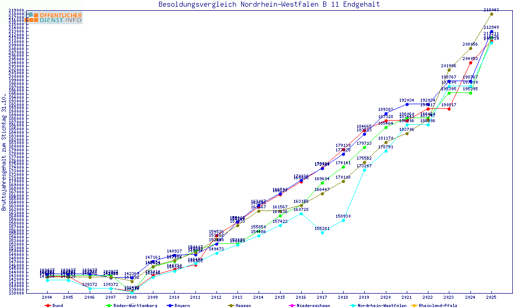 | Besoldungsvergleich B 11 im Jahr 2025 | Anfangsgehalt | ||||||