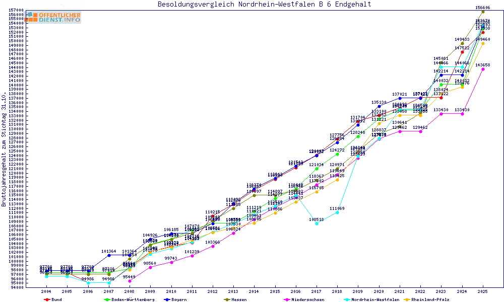 | Besoldungsvergleich B 6 im Jahr 2025 | Endgehalt | |||||||