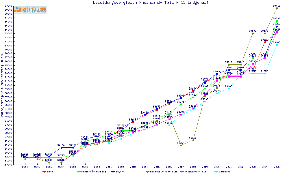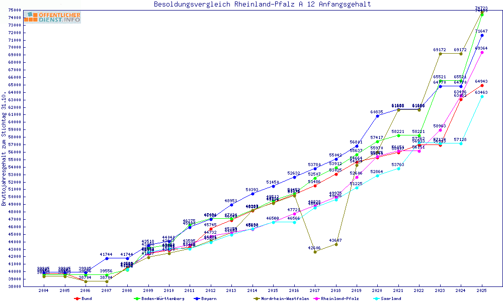 | Besoldungsvergleich A 12 im Jahr 2025 | Anfangsgehalt | ||||||