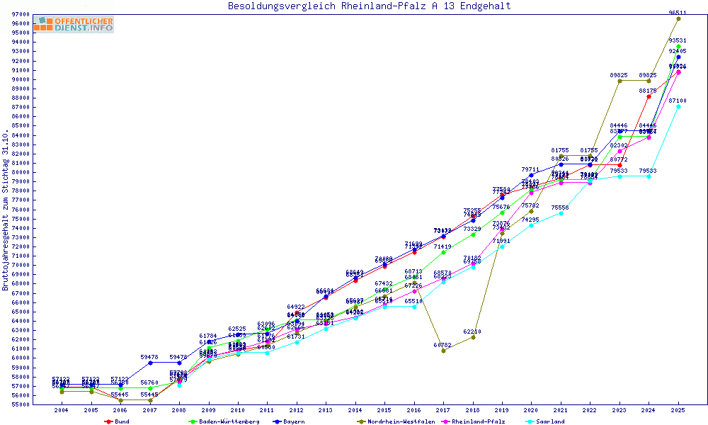 | Besoldungsvergleich A 13 im Jahr 2025 | gemitteltes Gehalt | ||||||