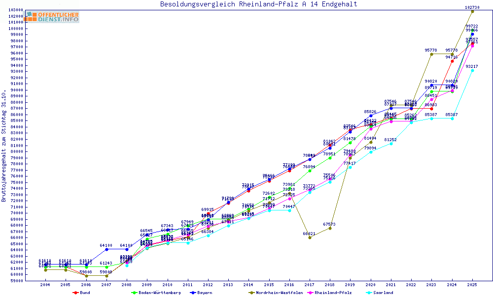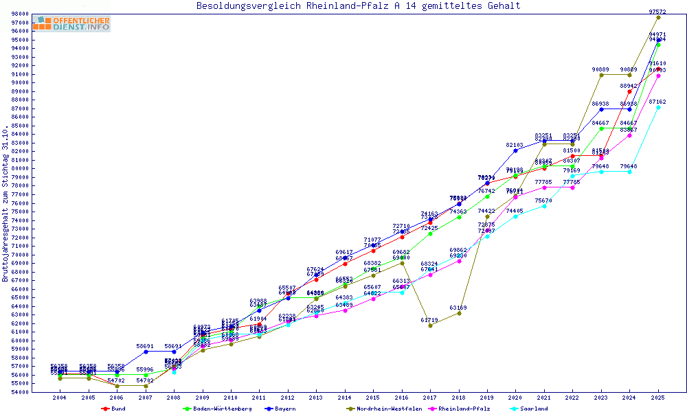 | Besoldungsvergleich A 14 im Jahr 2025 | gemitteltes Gehalt | ||||||