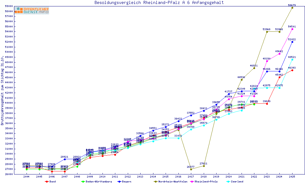 | Rheinland-Pfalz | 58.199 € | +321 € | +0.6% | 22 Jahre | ||||