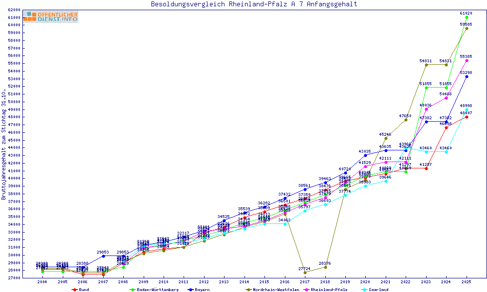 | Besoldungsvergleich A 7 im Jahr 2025 | Anfangsgehalt | ||||||