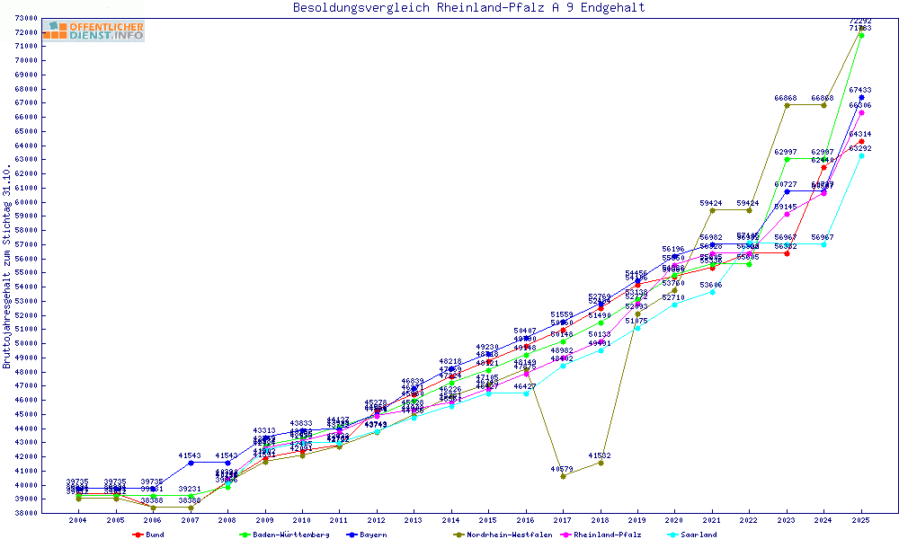 | Besoldungsvergleich A 9 im Jahr 2025 | Endgehalt | |||||||