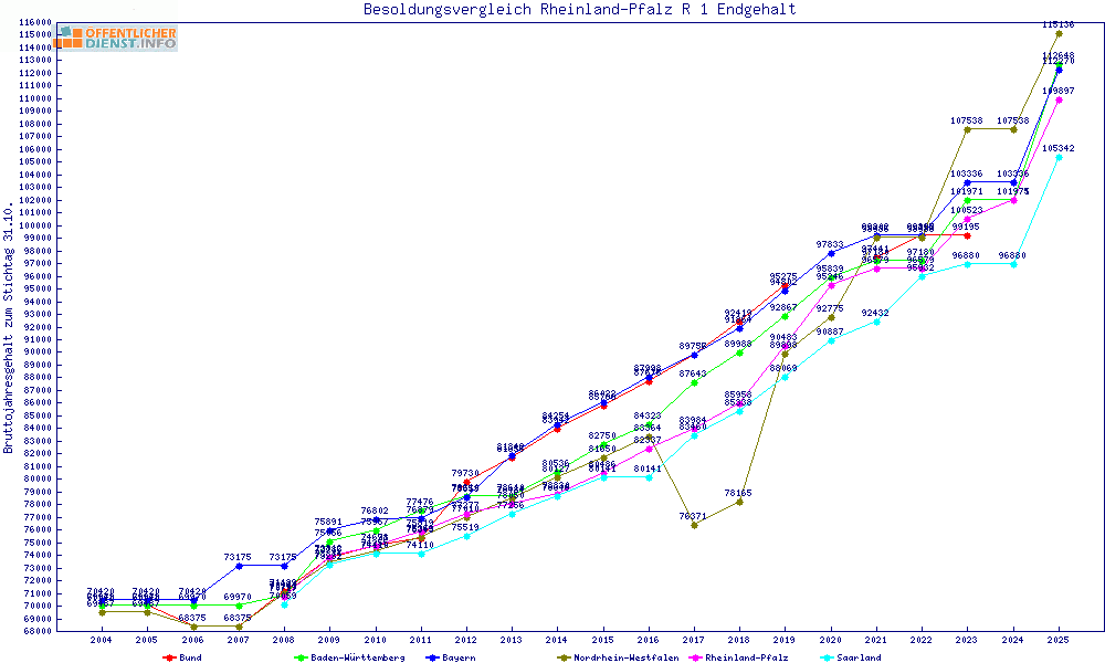 | Besoldungsvergleich R 1 im Jahr 2025 | Anfangsgehalt | ||||||