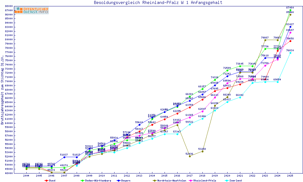 | Besoldungsvergleich W 1 im Jahr 2025 | Anfangsgehalt | ||||||