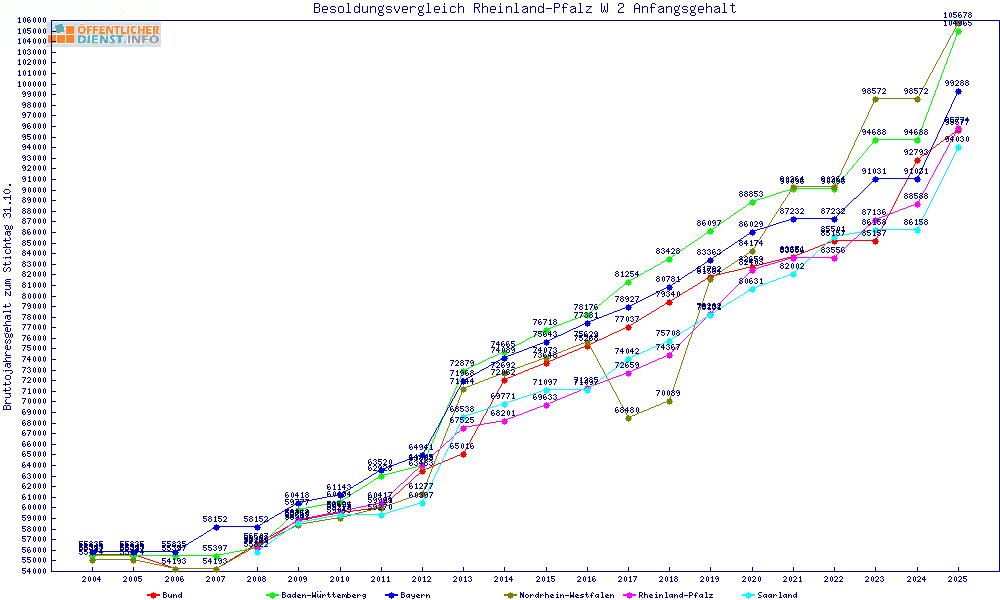 | Besoldungsvergleich W 2 im Jahr 2025 | Anfangsgehalt | ||||||