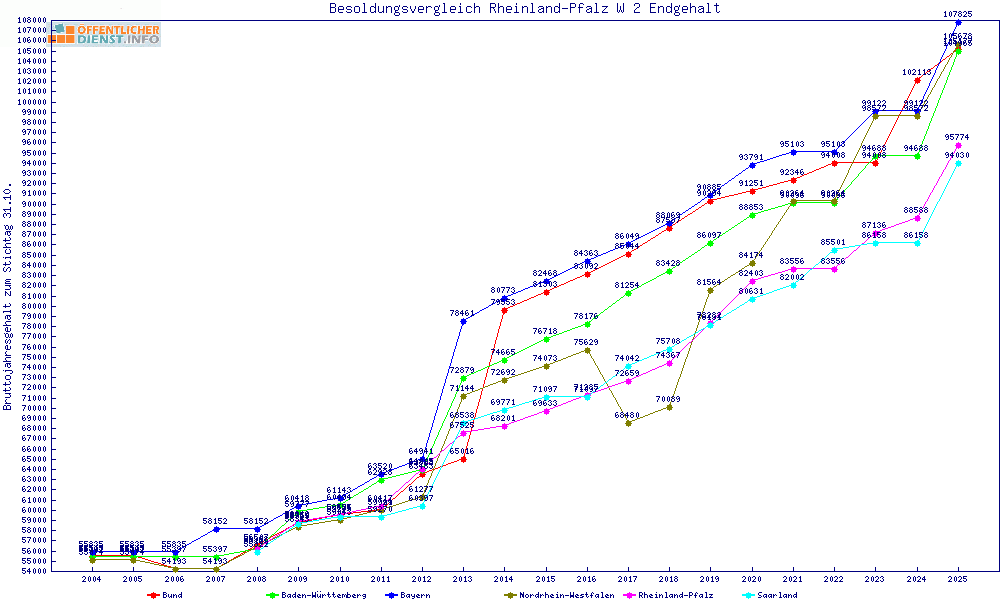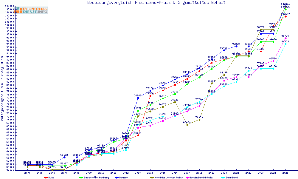 | Besoldungsvergleich W 2 im Jahr 2025 | gemitteltes Gehalt | ||||||