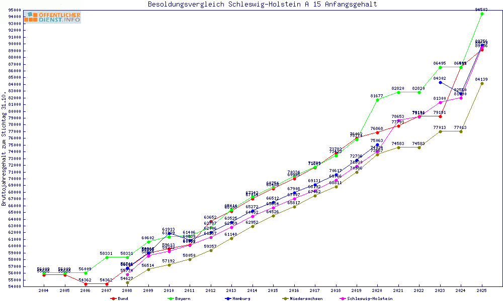 | Besoldungsvergleich A 15 im Jahr 2025 | Anfangsgehalt | ||||||