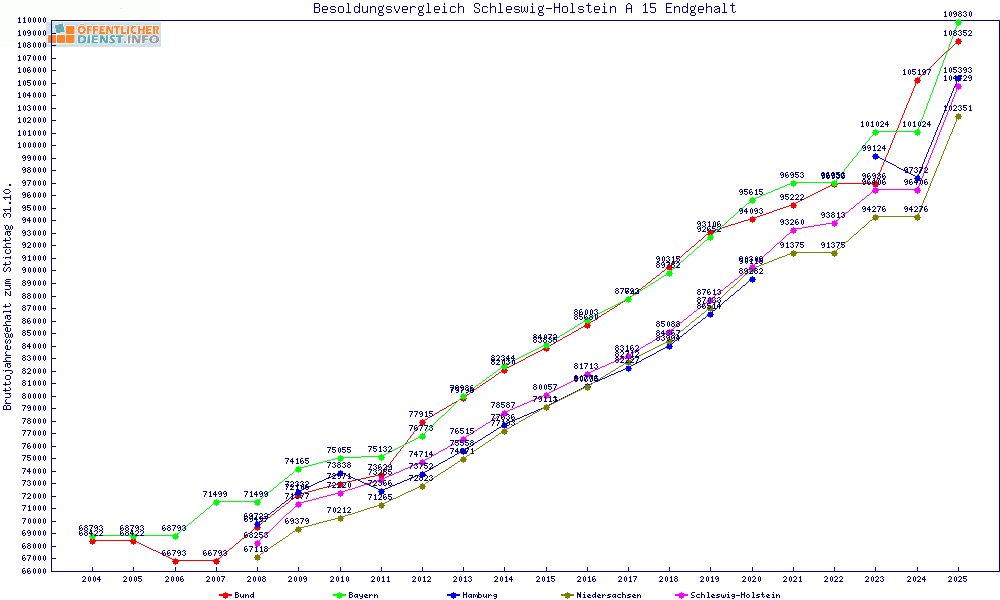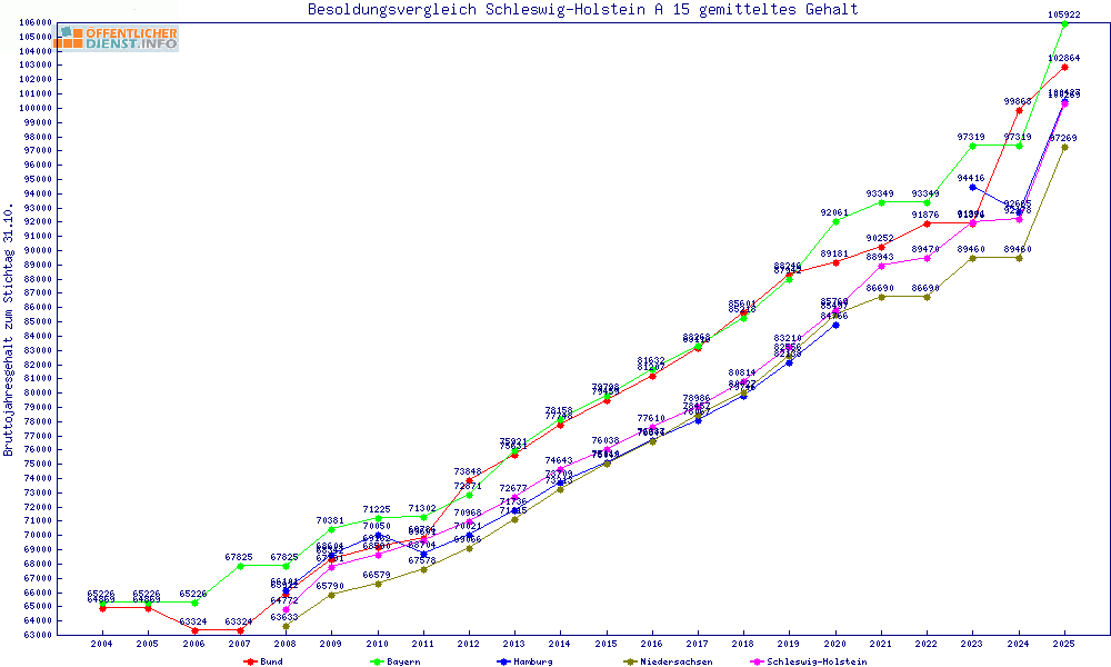 | Besoldungsvergleich A 15 im Jahr 2025 | gemitteltes Gehalt | ||||||