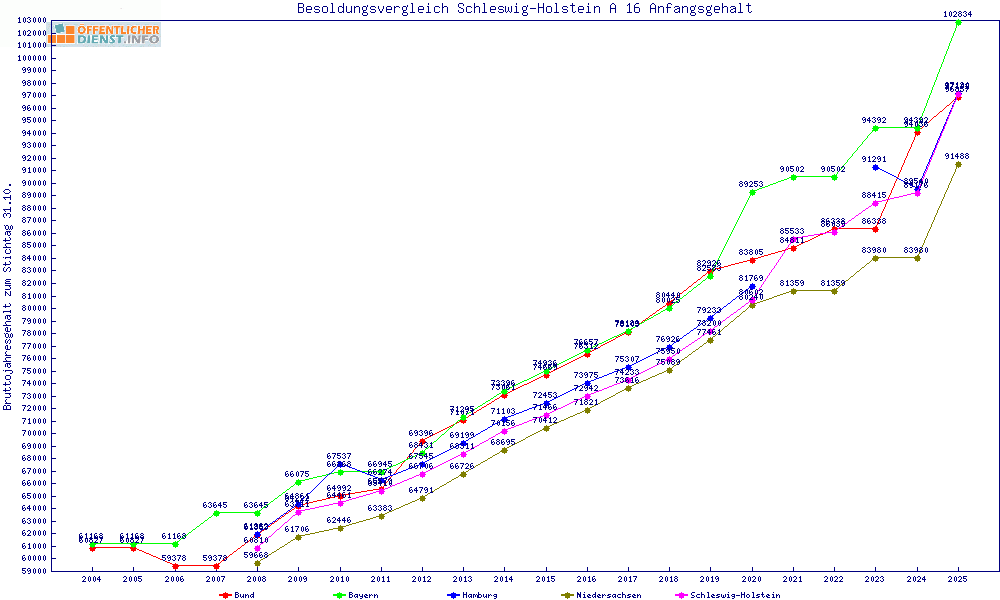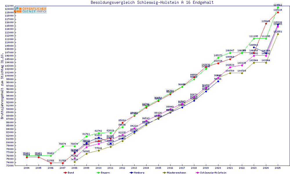 | Besoldungsvergleich A 16 im Jahr 2025 | Anfangsgehalt | ||||||