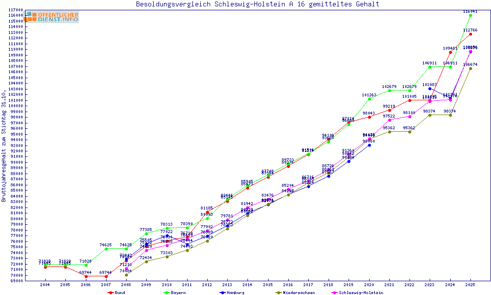 | Besoldungsvergleich A 16 im Jahr 2025 | gemitteltes Gehalt | ||||||