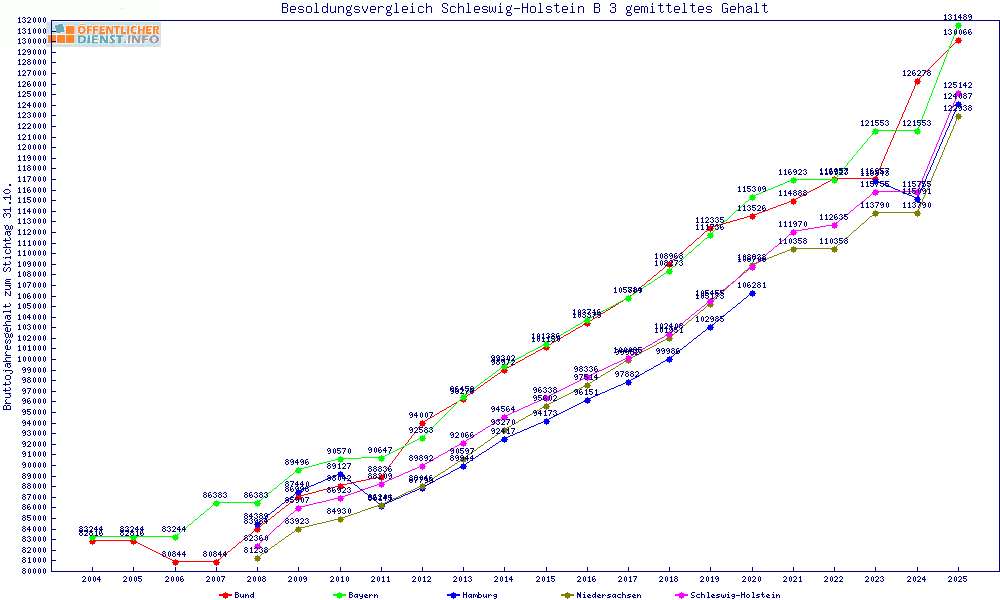 | Besoldungsvergleich B 3 im Jahr 2025 | gemitteltes Gehalt | ||||||