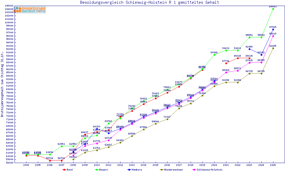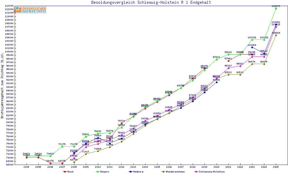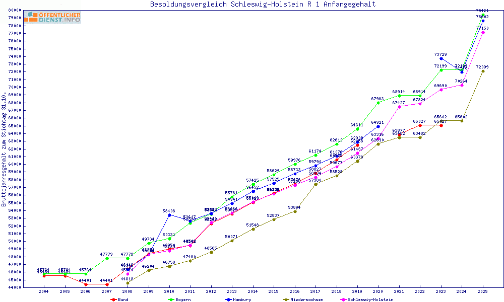 | Besoldungsvergleich R 1 im Jahr 2025 | Anfangsgehalt | ||||||