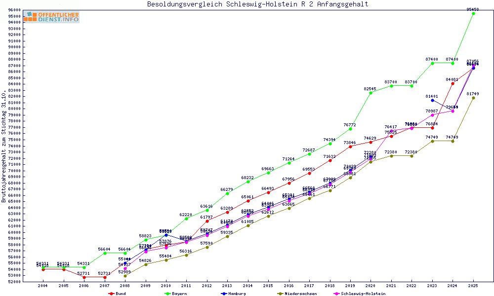 | Besoldungsvergleich R 2 im Jahr 2025 | Anfangsgehalt | ||||||