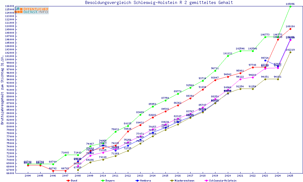 | Besoldungsvergleich R 2 im Jahr 2025 | gemitteltes Gehalt | ||||||