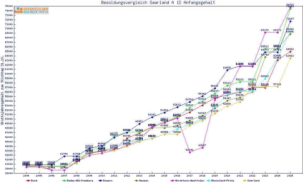 | Besoldungsvergleich A 12 im Jahr 2025 | Anfangsgehalt | ||||||