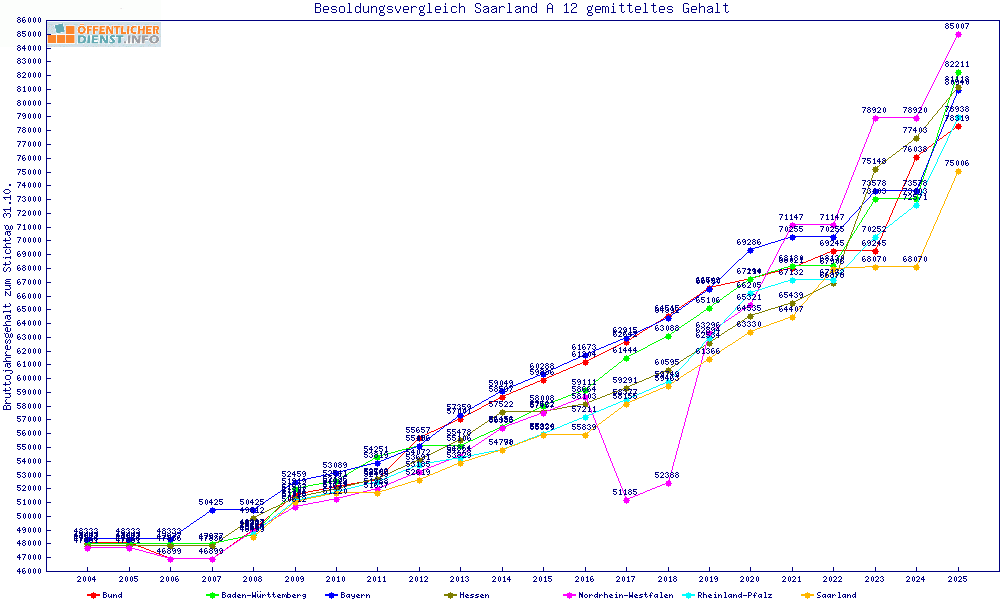 | Besoldungsvergleich A 12 im Jahr 2025 | gemitteltes Gehalt | ||||||
