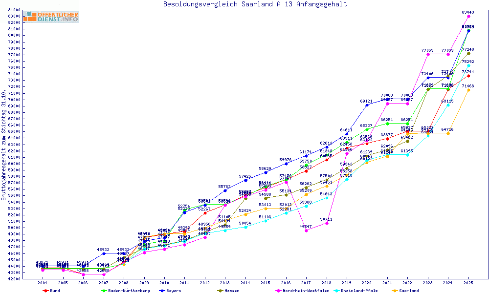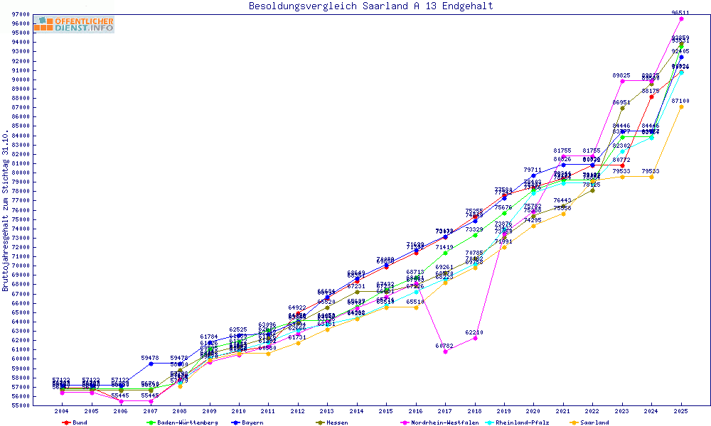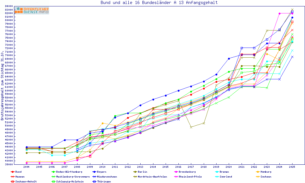 | Besoldungsvergleich A 13 im Jahr 2025 | Anfangsgehalt | ||||||