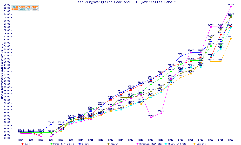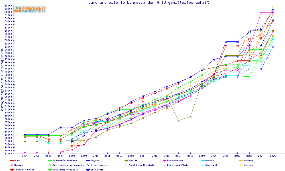 | Besoldungsvergleich A 13 im Jahr 2025 | gemitteltes Gehalt | ||||||