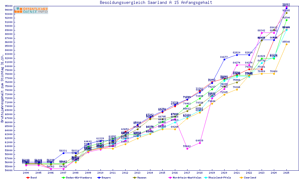 | Besoldungsvergleich A 15 im Jahr 2025 | Anfangsgehalt | ||||||